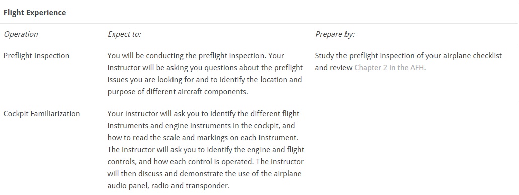 Each lesson is scheduled for a three hour block. The first hour consists of the Preflight Discussion, which is covered in more detail below. The second and third hour consists of the Flight Experience and Postflight Debrief.