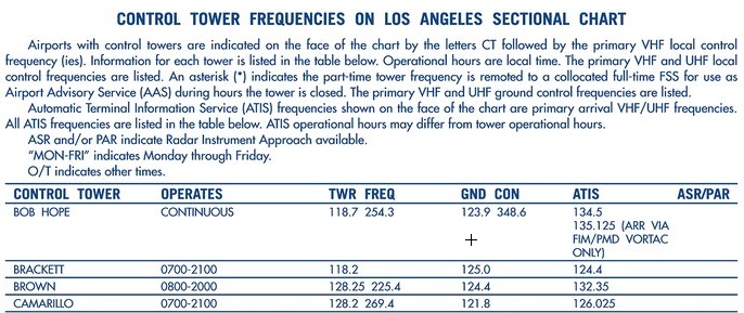 A table is included on the border of the sectional chart that includes the names, times of use, and frequencies of all tower controlled airports within the airspace depicted on the chart. This is helpful to look up the ground control frequency as its not depicted in the airport data next to the airport on the chart.