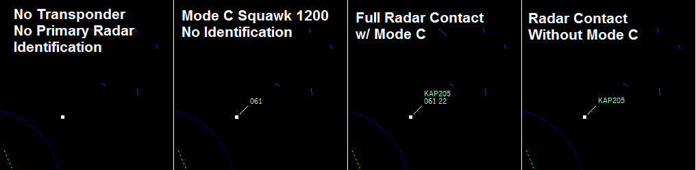 Here are examples of what a controller sees depending on the transponder mode and operational state.